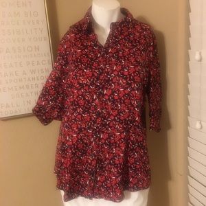 Red & Navy button down blouse