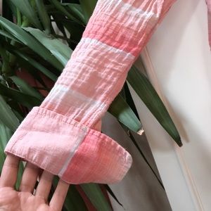 Salmon pink, half button down blouse. It has a pocket : )