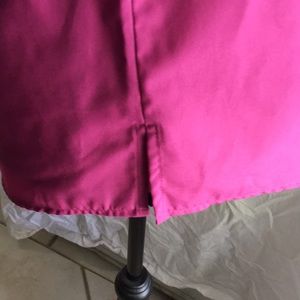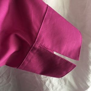 Magenta blouse w/ collar. Cotton/polyester. Three quarter sleeves. Slits on sides of hem. Never worn. Still has tags.