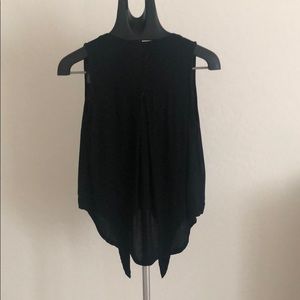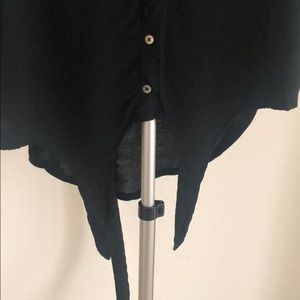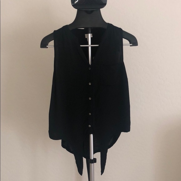 V neck sleeveless button down top. The bottom ties and can be adjusted to make shorter/a crop top. Like new