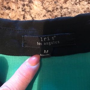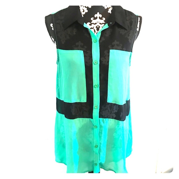 Color blocked button down blouse. Sleeveless