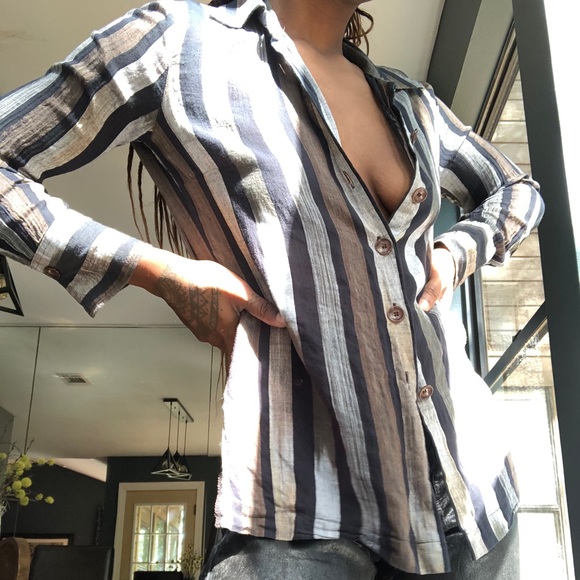 Stripped Bianca (German brand) dress shirt! Lightweight breathable cotton! Super soft and super cute. Can be worn many ways, loose, tucked in, or tied and cropped!