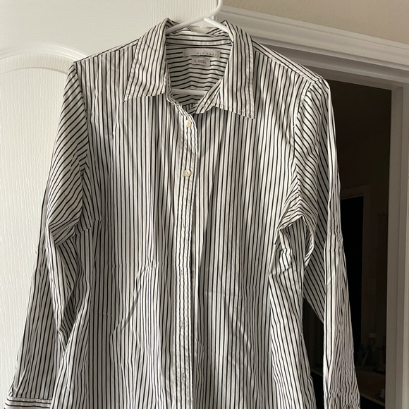 Black/white stripe blouse. Very good condition. No tears or stains. Worn a couple of times. Too big for me now. The black is more of a faint black color.