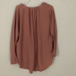 Long sleeve blouse that buttons down the front and is a high low style. It has a faux knot on the front and has been worn twice.