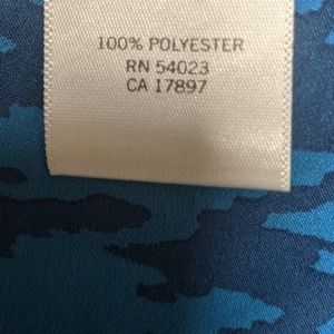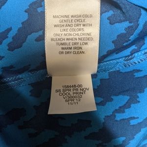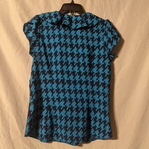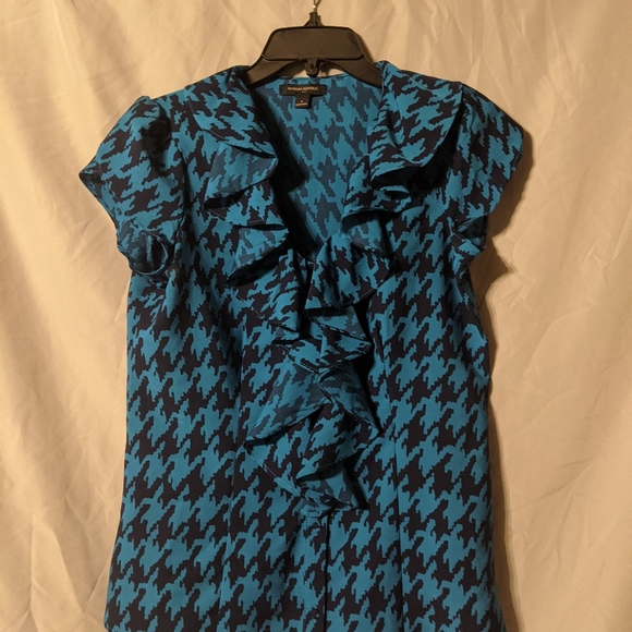 Navy and teal sleeveless button down. Pretty ruffle accents. Small cap sleeves.