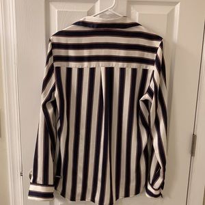 Very cute striped button down slim blouse. Burgundy, blue, and off white color. In good condition.