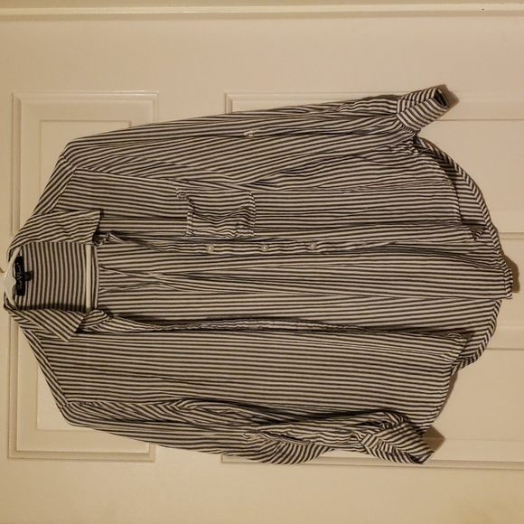 worn maybe 3 times - I LOVE this shirt, lightweight summer style. would be a great beach shirt but also cute enough to wear to work.