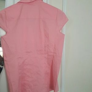 Bubblegum pink button down collared shirt. Cap sleeves