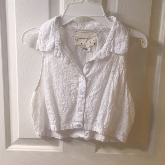 Cute button down crop top with lace flower patterns - LIGHTLY worn