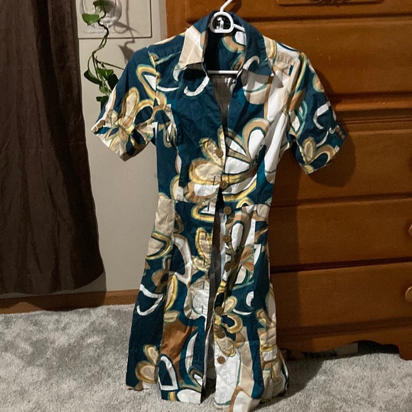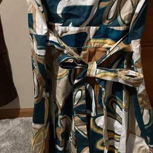Cute abstract dress with a tie in back. You can wear it unbuttoned over a tank/tee & shorts/jeans