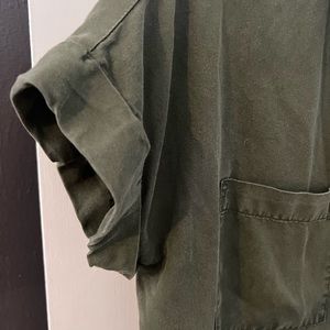 This is the absolute perfect army green soft fabric that is so thin and feels cool but holds its form. This is a closet staple. Best part of course it has pockets!!!