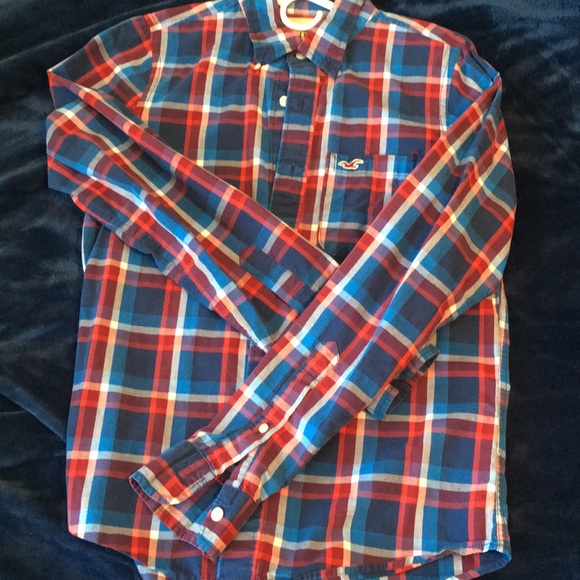 Men’s button down flannel. Blue, red, and white. Perfect condition