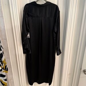 Satin-like button down midi dress, size L, NWT. It’s not real satin, but similar to it. I’d say it fits a little oversized. Bundle your likes and I’ll make you a great offer!