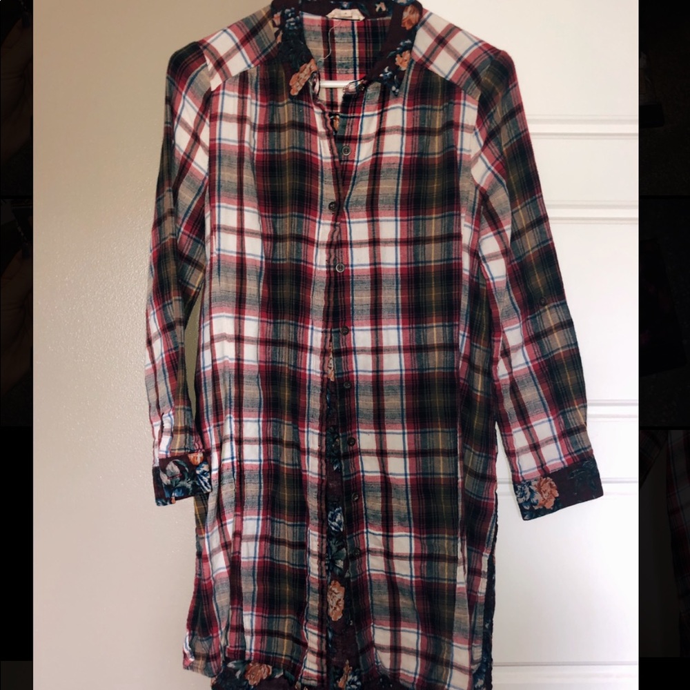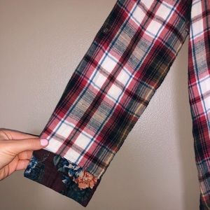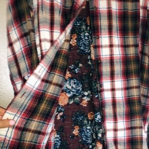 Boutique tunic, plaid outside - floral inside. “Oddy” brand, size small but fits loose. Super cute, gently used
