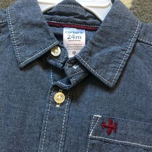 Brand new. Button down with red pants and airplane embroidery on pocket