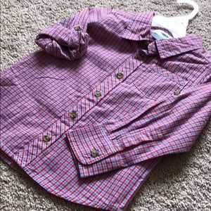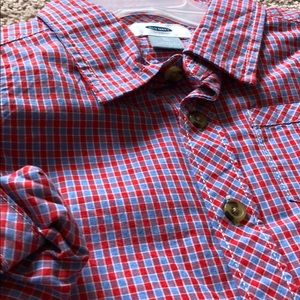 Red and blue button down shirt also has the capability of the sleeves rolling up and buttoning up as well brand new never been worn!