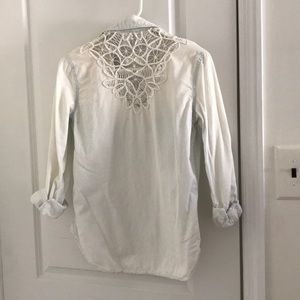 Denim looking button down with lace detail on the back