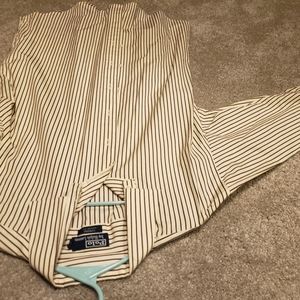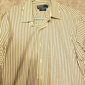Ralph Lauren button down with maroon and blue stripes. I bought this shirt about a month ago and only wore this it twice. NO STAINS! NO HOLES OR TEARS. Price is negotiable.