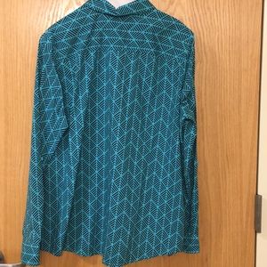 Kim Rogers size XL 100% cotton. Long sleeve green and navy blue