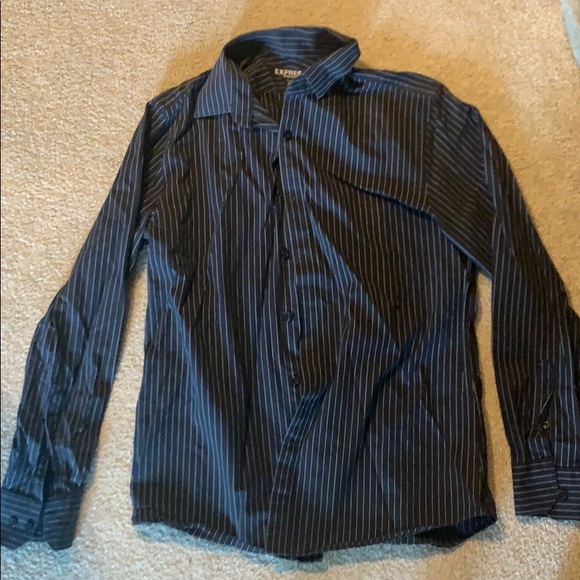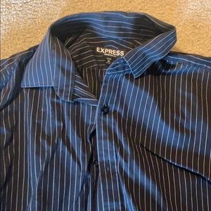 Gently worn button down shirt, Express medium modern fit, black with white stripes