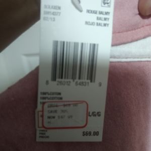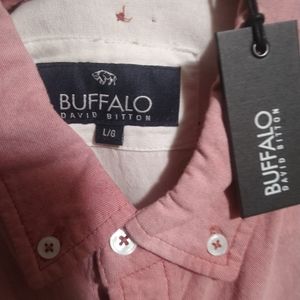 Pink shirt button down , brand new with tags never wore it . But it does have a small tear that I just saw.