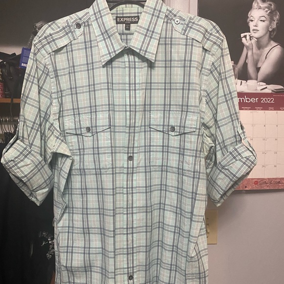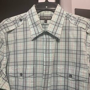 Mens Express plaid button down shirt size large