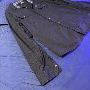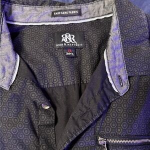 Black, long sleeve button-down shirt, the brand is Rock and Republic. Size XL.