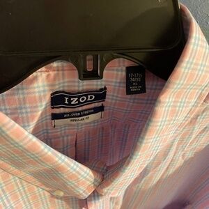 Pinpoint Oxford, pink and blue check, never worn no tags, 17 1/2-34/35 sleeve, Izod Dress Shirts