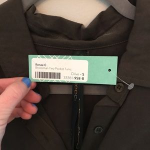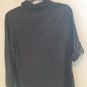 Olive/brown button down tunic with cuff sleeves