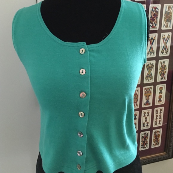 Aqua button down cropped tank top. The front is buttoned slightly uneven. Gently worn