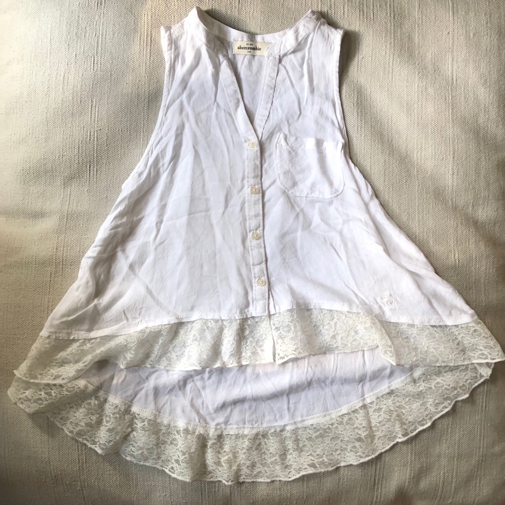 Cute button down tank top from abercrombie kids size M. A bit wrinkly but nothing a good iron can’t fix