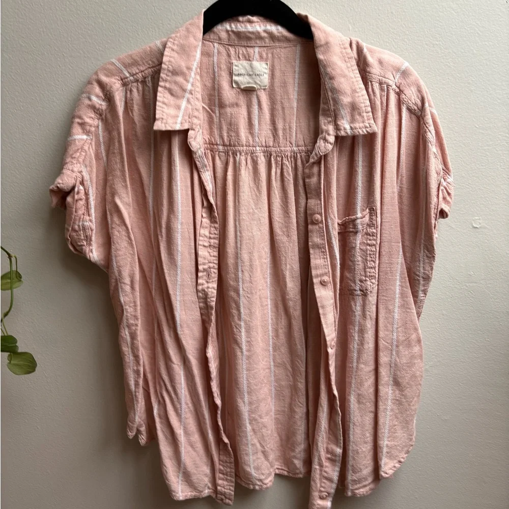 Pale pastel pink button down tee. Super soft cotton texture. Gently used.