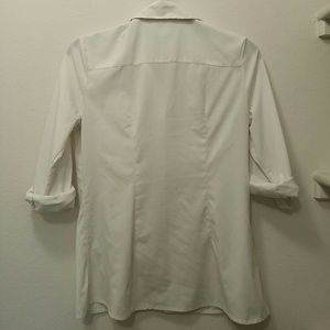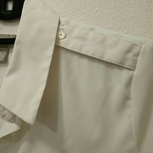 Write button down top with military-esque details like breast pockets and roll up sleeves. 100% polyester.