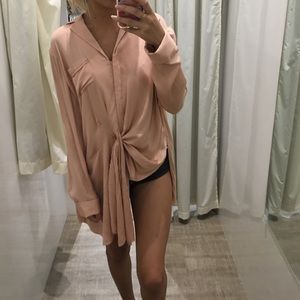 Cute button down blouse in a peachy pink color. STYLE STALKER brand. Originally $110. BNWT can be worn multiple ways. Will fit a xs/s