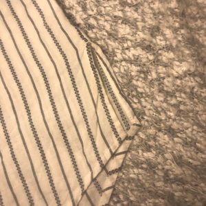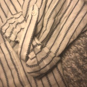 It’s slightly see through and long. Cute with leggings or boyfriend jeans. Never worn. Wrinkles easily. Can be rolled up.