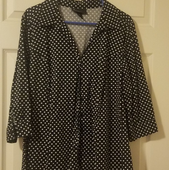 Black with white polka dots 3/4 sleeve button down top