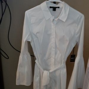 White long bell sleeved top. The top can be also worn as a dress. Has a waist belt. Mint condition. New with tag. Never worn. Just too small for me.