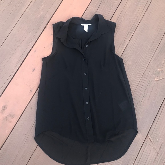 H&M black button down top. Worn only once. The back is longer than the front. Pictures to show sheerness