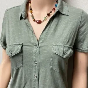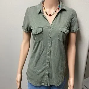 Sonoma 2 pocket button down knit top. 17” pit to pit & about 26” long.