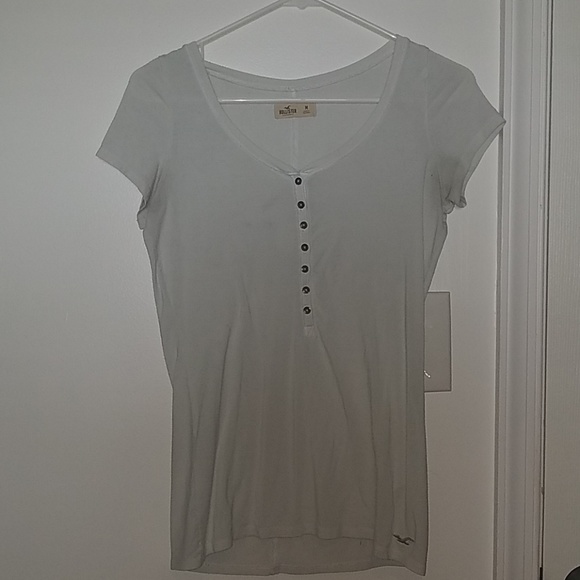 This is a white button down casual t-shirt