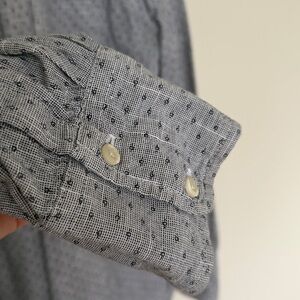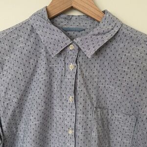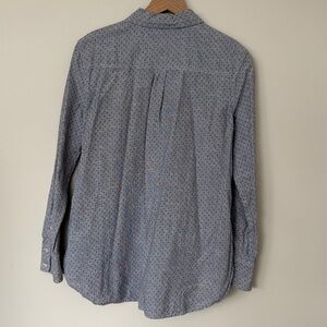Like new, blue patterned collared button-down tunic. Pit-to-pit: 21in Shoulder-to-hem: 29in