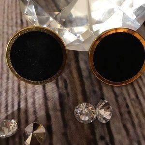 Black velvet button like earrings velvet in front with gold color edge for pierced ears about an inch long