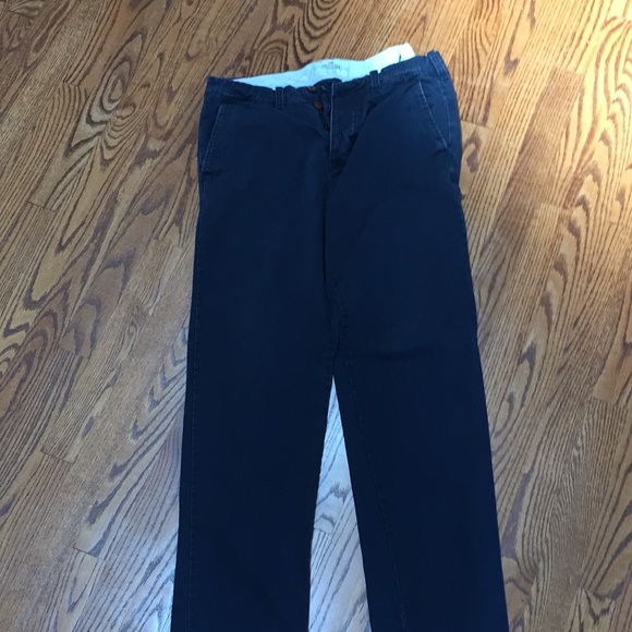 Navy 4 button fly pants comfortable brushed fabric