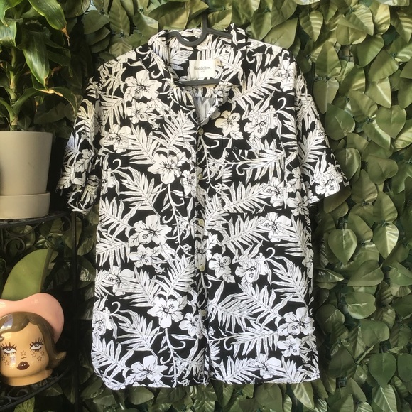 black and white button down- short sleeves. size medium. standard fit. goodfellow target brand.