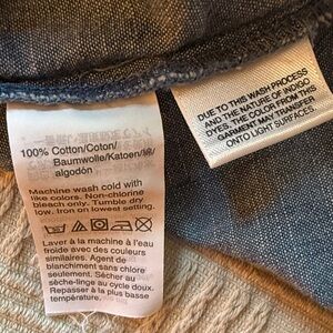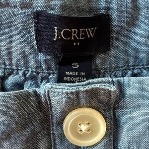 Chambray, linen feel button front women’s square neck top. Buttons are sewn on