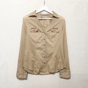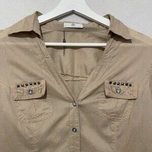 Button front top shirt with metalic studs tag size L fitted Ali & Kris