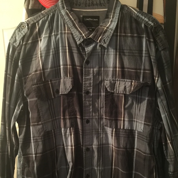 Calvin Klein Jeans button up. Lost weight and it fits baggy now. Says XXL but fits like an XL.