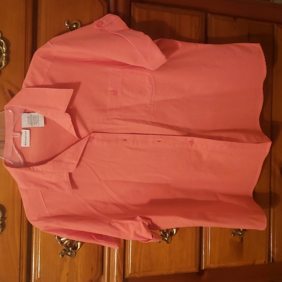 Pretty coral button down top by white stag. Short sleeves with a cuff and button design.