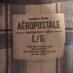 Aeropostale button up short sleeve. White, gray, blue. Size L. good condition