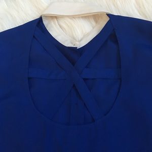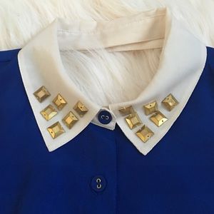 Royal blue button up shirt . White cuffs and collar. Studded collar. In mint condition